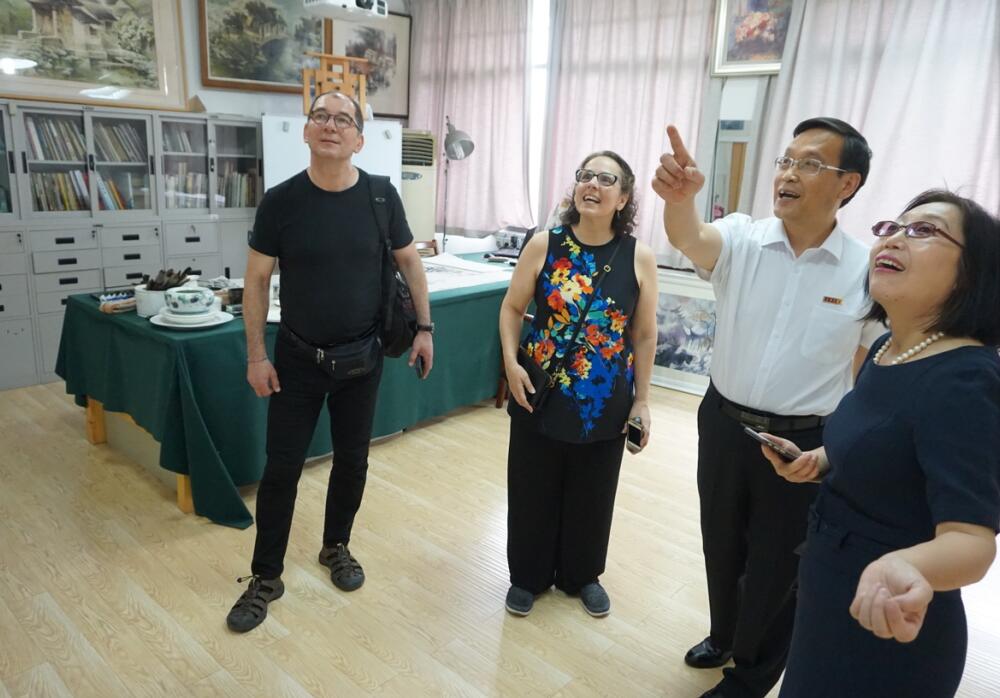 鲁恒心院长对代表团一行的来访表示欢迎,并简要介绍了学院基本情况和特色优势。代表团一行参观了学院环境艺术设计专业毕业生作品展、服装设计与工程实验室等,走进学院画室参观等。对学院的美丽乡村建设作品、服装设计与制作工作、中国画以及各专业实验室留下了深刻的印象。