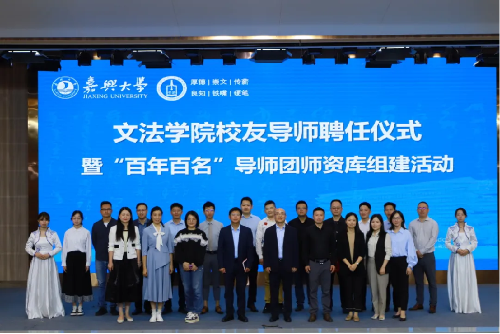 2024年10月10日下午,我院在图书馆一楼学术报告厅举办了嘉兴大学文法学院校友导师团聘任仪式暨"百年百名"校友导师团师资库组建活动。嘉兴大学社会合作处副处长李以名、文法学院党委书记童建华、文法学院学术院长石贤平、校友导师团及文法学院2024级全体新生参加本次活动。活动由文法学院党委副书记牟威主持。